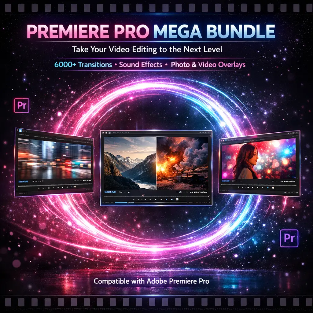 Transform your videos into cinematic masterpieces with this all-in-one Premiere Pro Mega Bundle today! 🎥✨