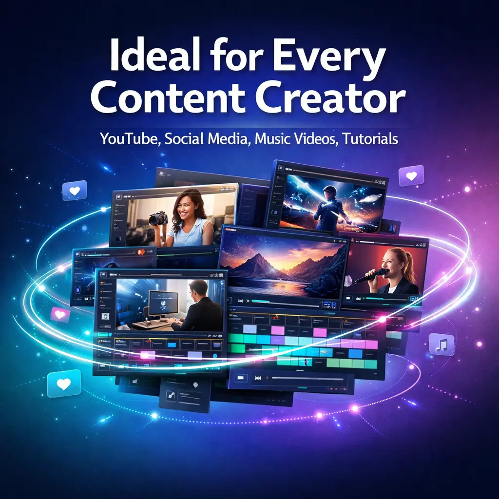 YouTube videos, social media content, promo videos, music videos, tutorials, personal or educational projects.